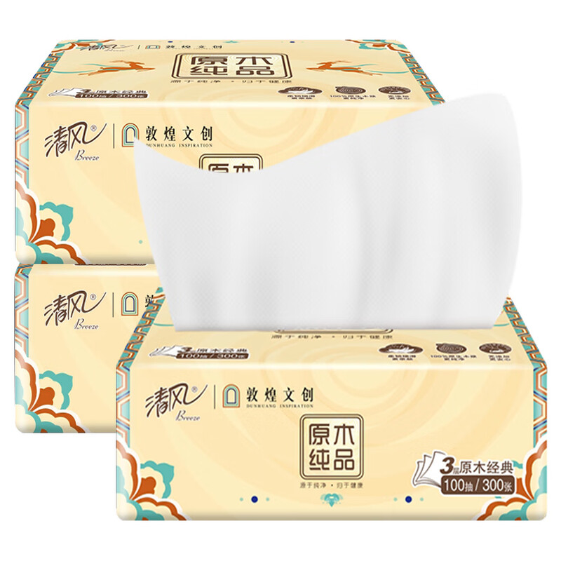 清风 原木敦煌联名抽取式面巾纸 3包 (3层100抽/包)