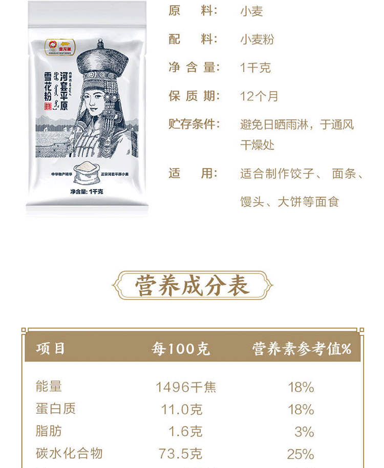 金龙鱼 河套平原雪花粉 1kg*5