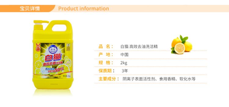白猫高效去油洗洁精 2kg