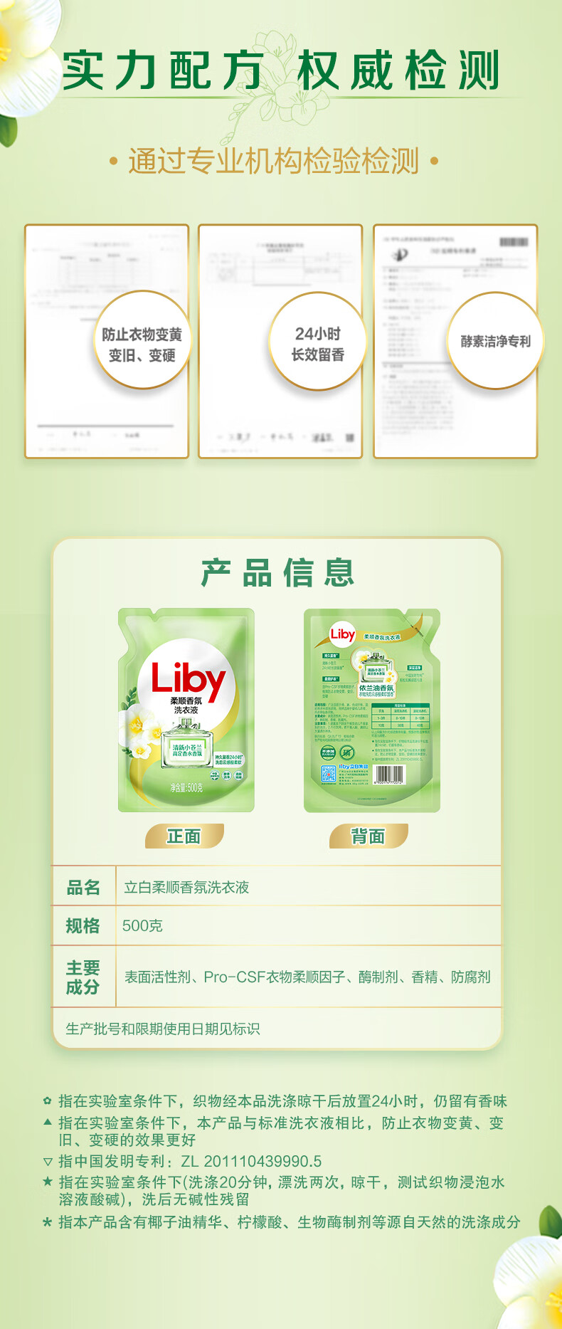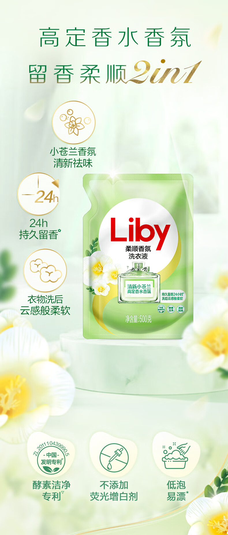 立白 小苍兰柔顺香氛洗衣液500g*1袋 500ml
